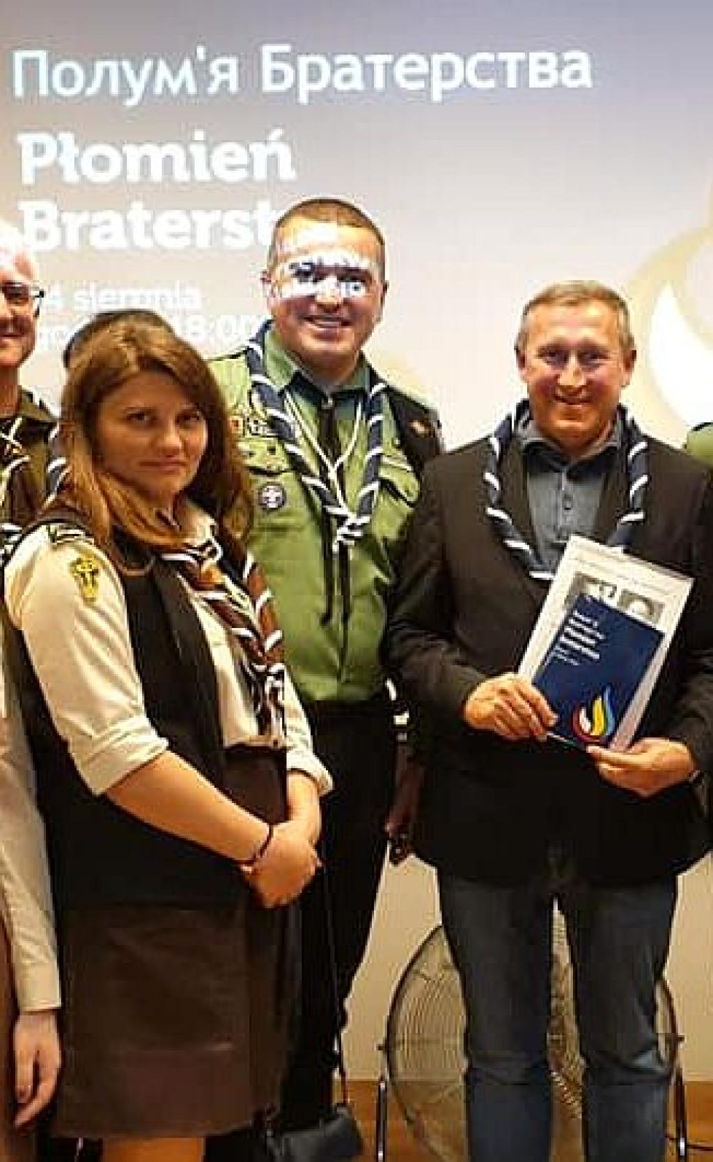 Ambasador Ukrainy w Rzeczypospolitej Polskiej Andrij Deszczycia w Domu Ukraińskim w Warszawie podziękował uczestnikom akcji „Płomień braterstwa” - Ukraińskim Plastunom i Polskim Harcerzom.