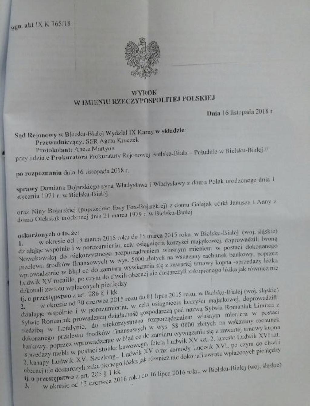 Kobieta o złożonym z trzech części nazwisku (przedstawiamy ją jako Ewa F.-B. vel M.) oferowała w internecie meble. Chciała je kupić Pani Dorota, która przelała na internetowe konto oszustki 16 tysięcy złotych.