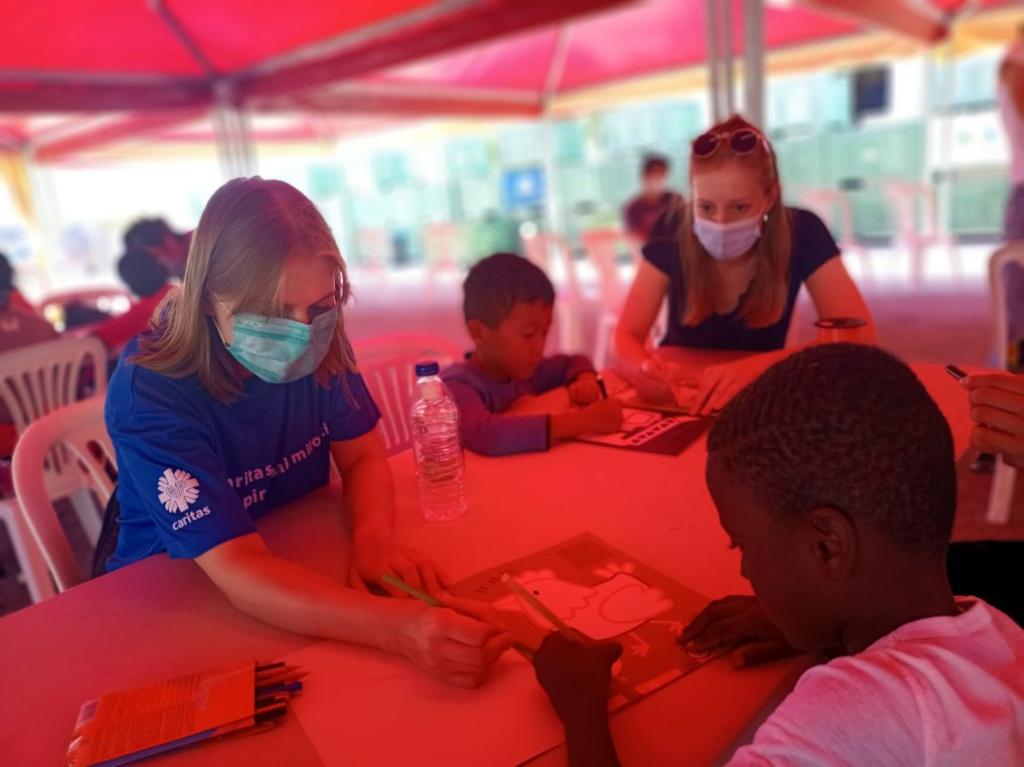 Działalność edukacyjna to kolejny aspekt misji Caritas Polska na Lesbos. Wolontariusze prowadzą kurs angielskiego od podstaw dla dorosłych, a dzieci mogą uczestniczyć w tzw. Szkole Pokoju, czyli zajęciach służących nauce języków, głównie angielskiego, przez wspólną zabawę i międzykulturową integrację.