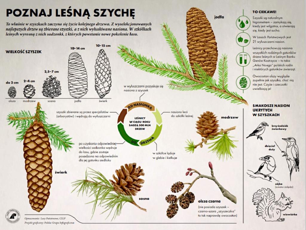 Niemal 5 ton szyszek zostanie zebranych z plantacji nasiennej świerka pospolitego w Nadleśnictwie Zwierzyniec (RDLP w Lublinie). Duży urodzaj pozwoli na zgromadzenie zapasów nasiennych tego gatunku dla wielu nadleśnictw lubelskiej dyrekcji LP.