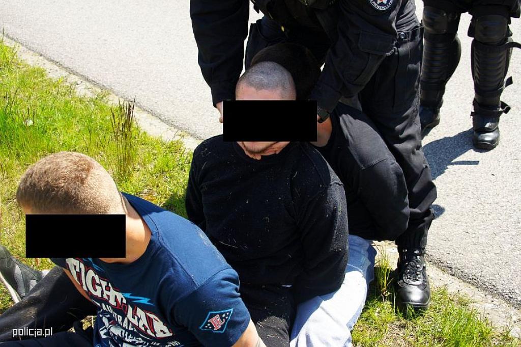 Łódzcy policjanci zapobiegli brutalnej napaści zaplanowanej w rejonie autostrady przez pseudokibiców jednego z łódzkich klubów piłki nożnej na innych kibiców jadących na mecz swojej drużyny rozgrywany poza województwem łódzkim. Zatrzymanych zostało 22 mężczyzn. Jeden już trafił do aresztu. Policjanci zabezpieczyli m.in. maczety, kije, młotki, kominiarki, pojemniki z gazem łzawiącym a także rękawice do walki, ochraniacze na zęby i naklejki imitujące tablice rejestracyjne.
